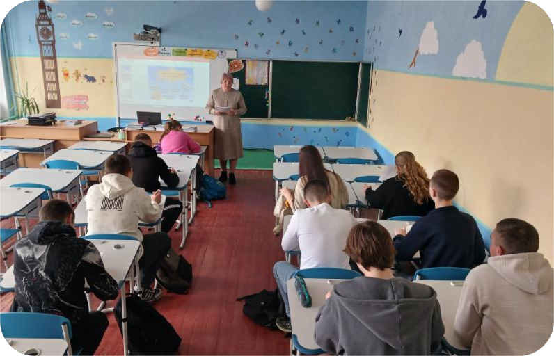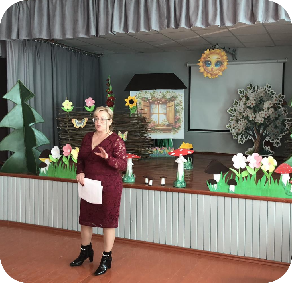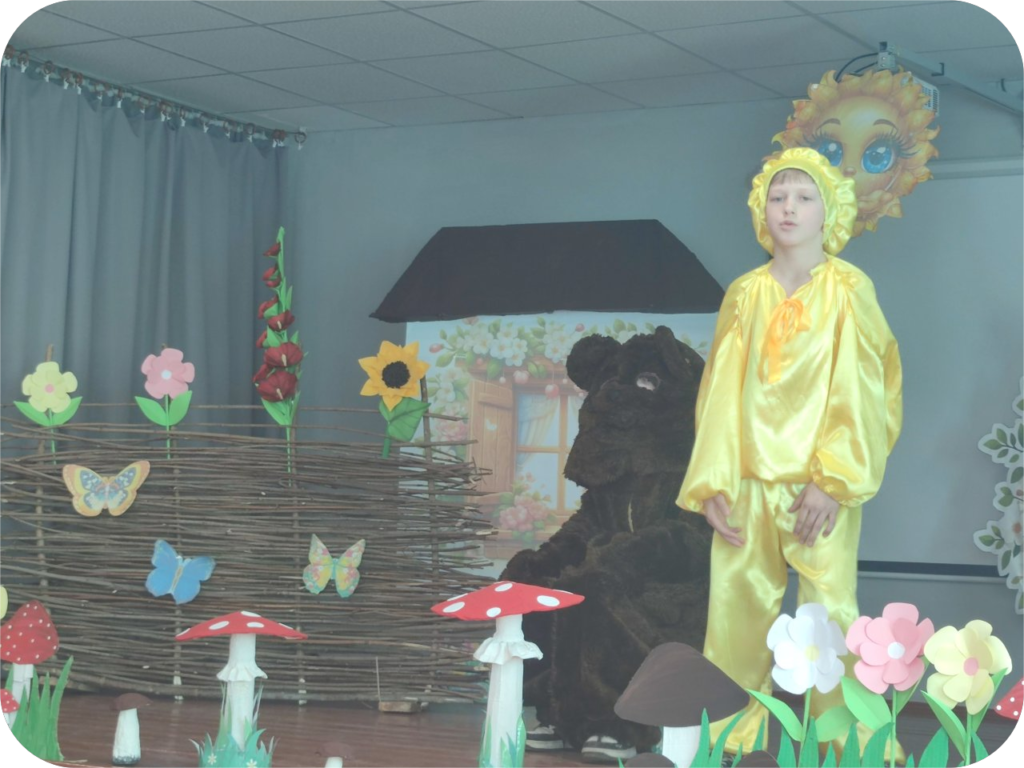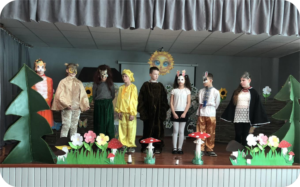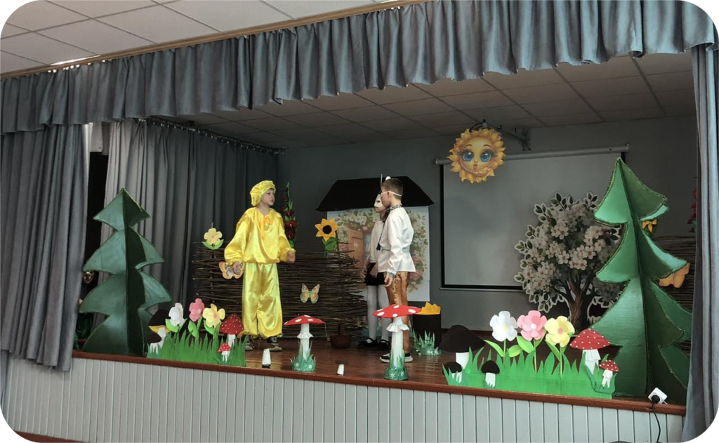 Після бесіди, діти, вирушили у чарівну подорож до країни казок! Разом зустріли знайомих персонажів, згадали улюблені історії та відкрили для себе щось нове. А,також,із захопленням переглянули інсценізацію казки «Колобок»,яку підготувала вчитель драматургії Завертана Ю.М. разом із учнями 5 класу.